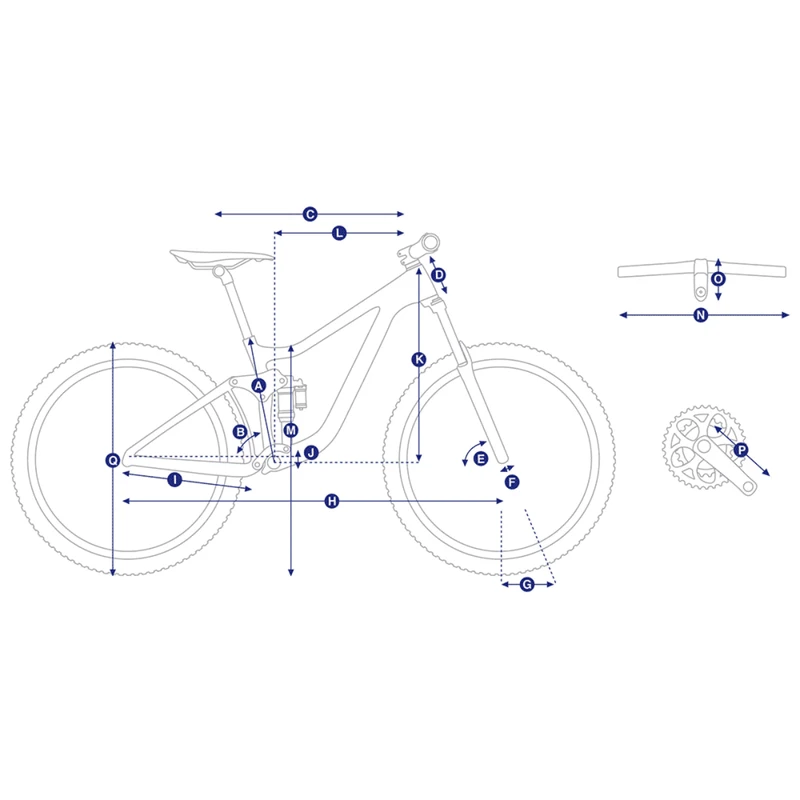 | J | BOTTOM BRACKET DROP (inch) | 1.6 | 1.6 | 1.6 | 1.6 |