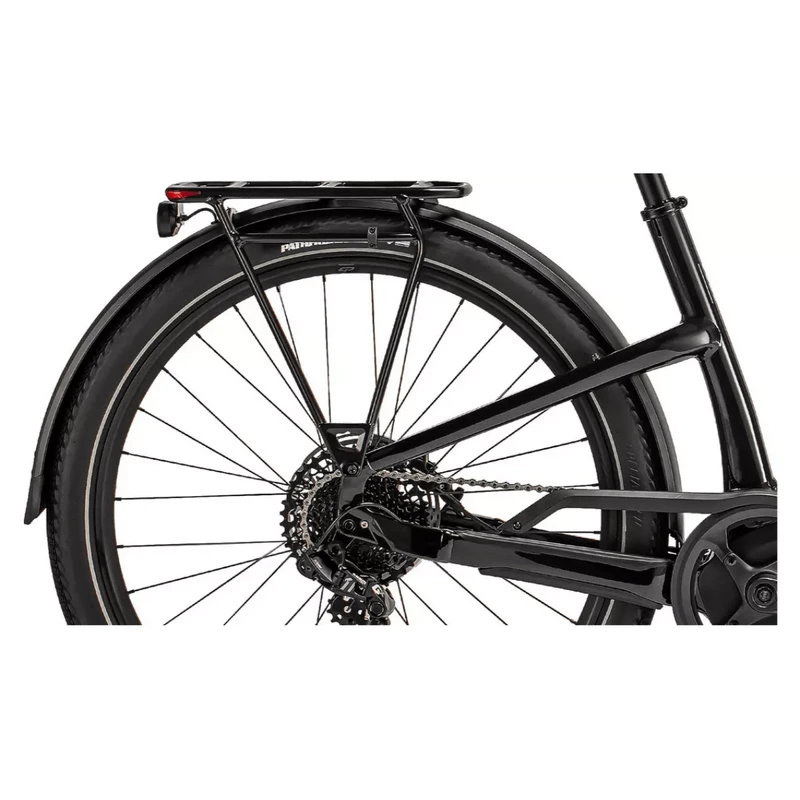 - Frame: E5 Aluminum, bottom bracket motor mount, fully integrated & lockable downtube battery, internal cable routing, lock and front rack mount