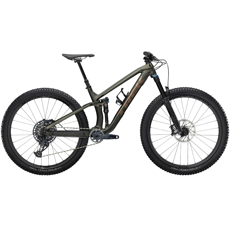 Fuel EX 9.8 combines a light full-carbon frame with parts chosen for the highest performance-to-price ratio. High-end FOX suspension with upgraded front and rear dampers, carbon wheels with a Rapid Drive rear hub, and SRAM’s latest, widest-range drivetrain give this model an extra edge you’ll notice from the first pedal stroke.